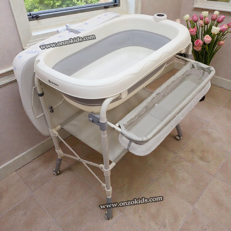 Découvrez un confort optimal avec notre baignoire à langer 2-en-1 innovante pour bébé. Cet ensemble polyvalent transforme facilement le change en bain, le tout au même endroit. Fabriqué avec des matériaux haut de gamme pour une sécurité et une durabilité maximales, il est doté d’une structure tubulaire en acier robuste supportant jusqu’à 50 kg et d’un réglage en hauteur sur 4 niveaux pour un confort optimal, quelle que soit votre taille. Déplacez-le sans effort grâce à ses 4 roues pivotantes à 360° avec freins, assurant une stabilité parfaite. La baignoire amovible et pliable (0-36 mois) est équipée d’un affichage de la température en temps réel, d’un coussin antidérapant, d’un support pour douchette et d’une bonde avec bouchon. Son système de pliage rapide permet un rangement compact, même dans les petits espaces comme la salle de bain ou la chambre. Le matelas à langer en PVC, certifié ASTM et CPC, est facile à nettoyer et vous offre une tranquillité d’esprit. Organisez votre espace grâce au porte-couches et aux paniers pliables inclus, pour garder couches, lingettes et produits essentiels à portée de main et assurer la sécurité de votre bébé.