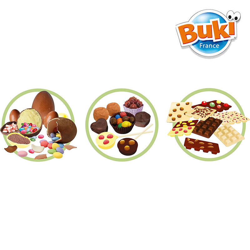 Tu pourras également préparer des tablettes, dessucettes, des oeufs garnis et des oeufs surprises avec le matériel fourni !