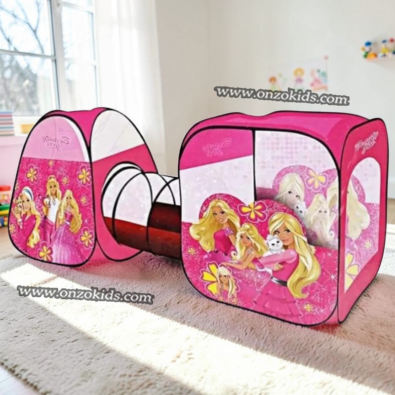Deux tentes de jouet et un tunnel dans un ensemble. Vous pouvez les connecter ensemble et jouer séparément.Les tentes disposent de deux entrées distinctes: une avec fermeture à glissière (elle s’ouvre de l’intérieur et de l’extérieur), la seconde – sous la forme d’un rideau sur les cordes. Windows et la moitié du tunnel – avec un maillage – pour l’accès à la lumière et à l’air.