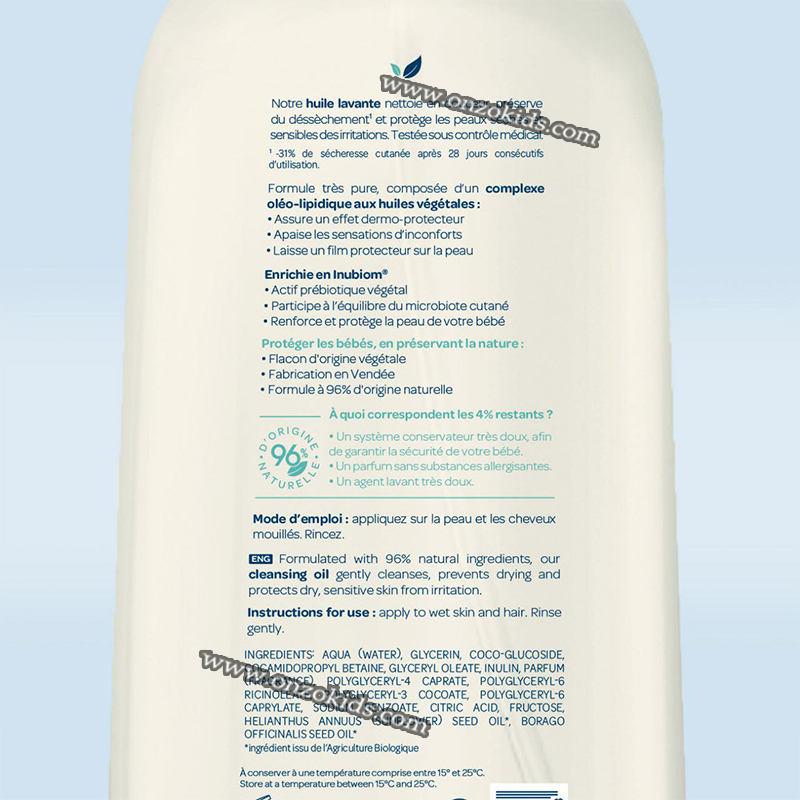 Composée à 96% d’ingrédients d’origine naturelle et enrichie en huiles végétales, elle sera douce et parfaitement sécurisée pour la peau fragile des plus petits.