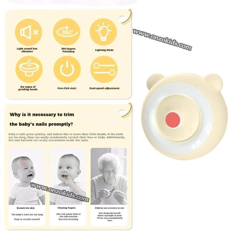 Cette lime à ongles électrique est conçue pour couper et lisser les ongles en toute sécurité, surtout pour les bébés et les jeunes enfants.