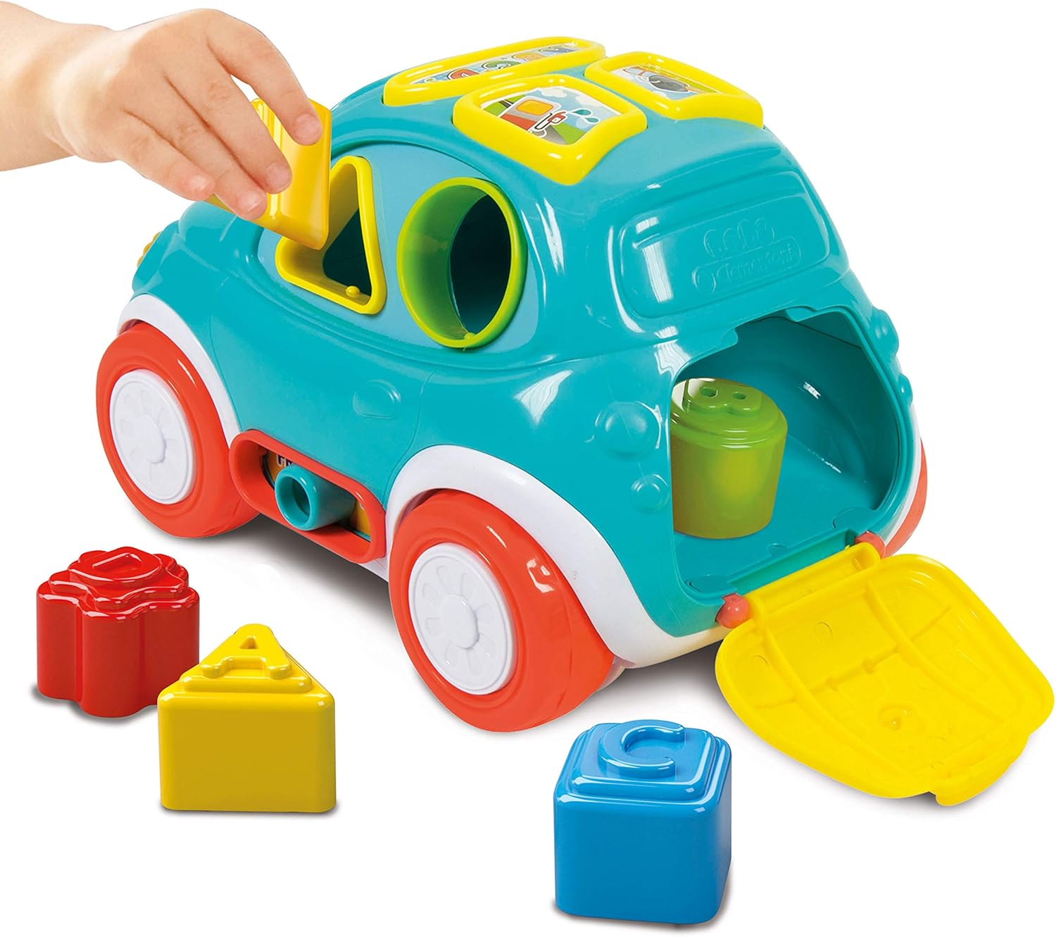 - Jeu multifonctions 3 en 1 : une amusante voiture colorée, un centre d’activités électronique et éducatif et un joli trieur de formes.
