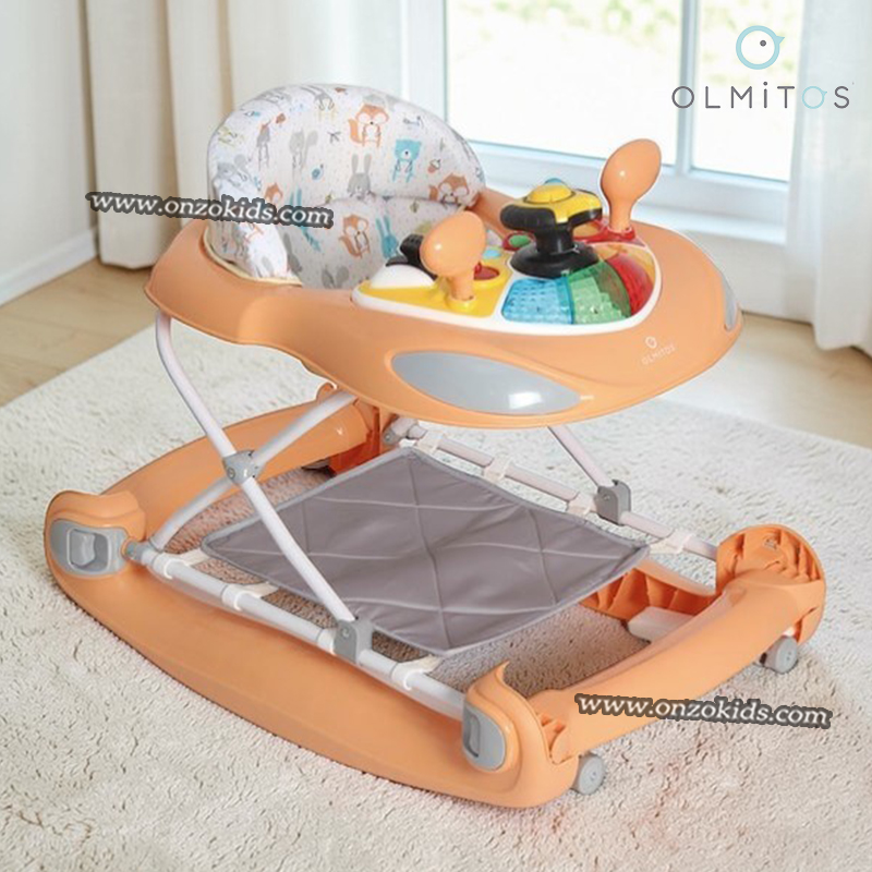- Il peut être utilisé avec les roues pour apprendre à marcher en mode bascule. En tant que transat, il est équipé d’un repose-pieds pour assurer la bonne posture du bébé pendant le balancement.