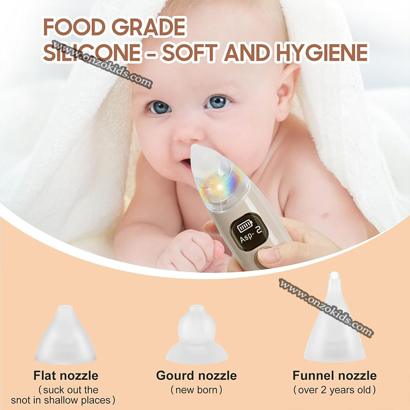 Aspirateur nasal électrique répond aux normes d’inhalation sûres pour éviter d’endommager la fragile muqueuse nasale du bébé, le contact oral et les infections croisées. Trois buses en silicone indépendantes garantissent une hygiène absolue. Evolution : Faites évoluer le nez de bébé pour accompagner la croissance de votre enfant avec différentes astuces.
