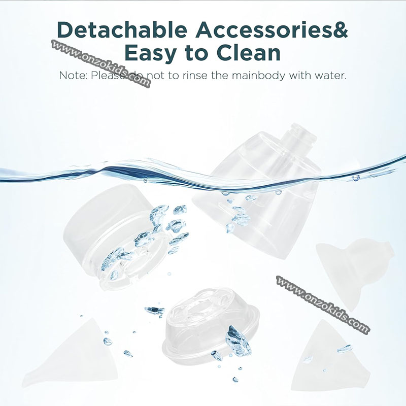 Mouche bébé électrique, l’aspirateur nasal est meilleur que les aspirateurs nasaux et les pompes traditionnels. Plus puissant, plus hygiénique et plus pratique. Tête d’aspiration de sécrétions épaisses : s’adapte à la congestion nasale changeante des enfants, tête d’aspiration en silicone, matériau flexible et doux.