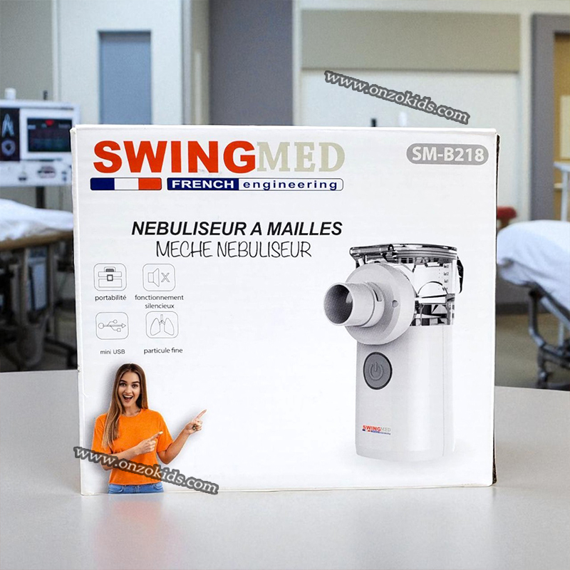 nébuliseur à mailles mécaniques SWINGMED SM-B218.Fonctionnalité : Conçu pour administrer des traitements par aérosol, transformant les médicaments liquides en un fin brouillard.