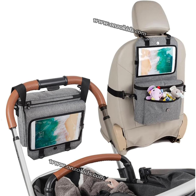 Cet organisateur de luxe avec support de tablette peut être utilisé comme organisateur de voiture ou comme organisateur de poussette suspendu à la poussette. L’organisateur dispose de divers compartiments de rangement pour que tout soit bien rangé et toujours à portée de main.