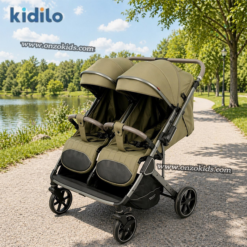 La poussette double Kidilo T33 est la solution idéale pour les parents ayant des jumeaux ou deux jeunes enfants. Elle se distingue par son design moderne et élégant en couleur verte, avec deux sièges confortables offrant un maximum de bien-être pendant les déplacements.