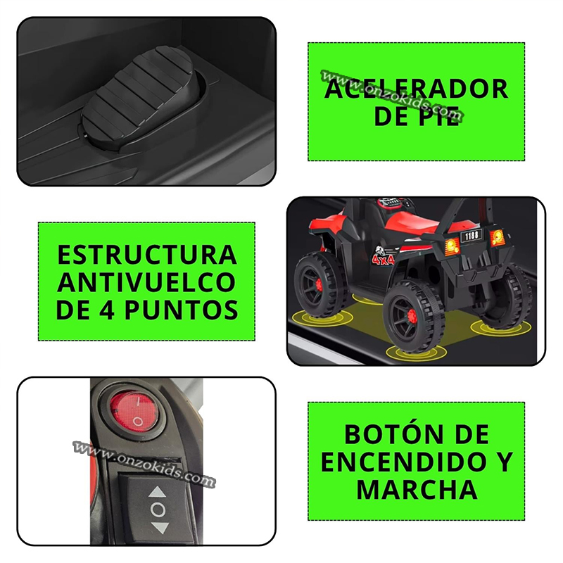 Caractéristiques spéciales : Freinage automatique, marche avant/point mort/marche arrière, entrée AUX, sons préenregistrés