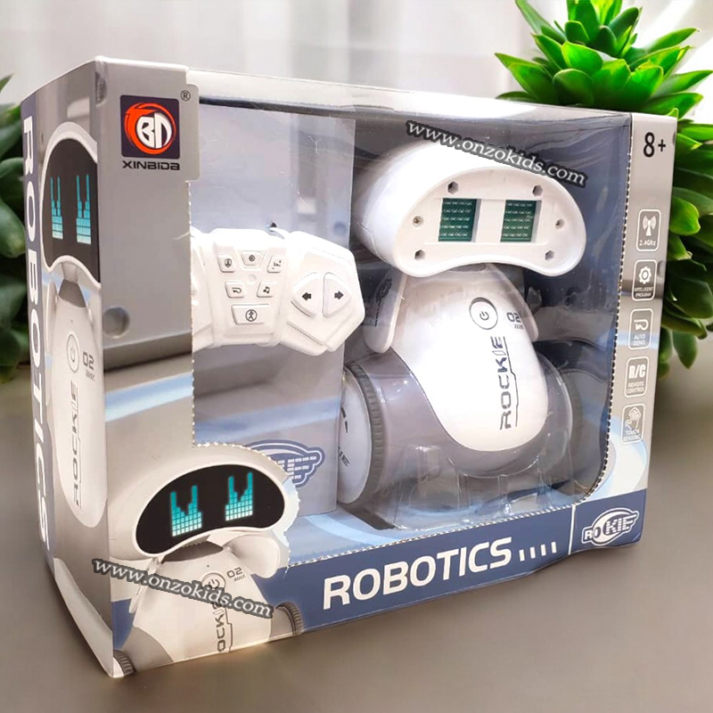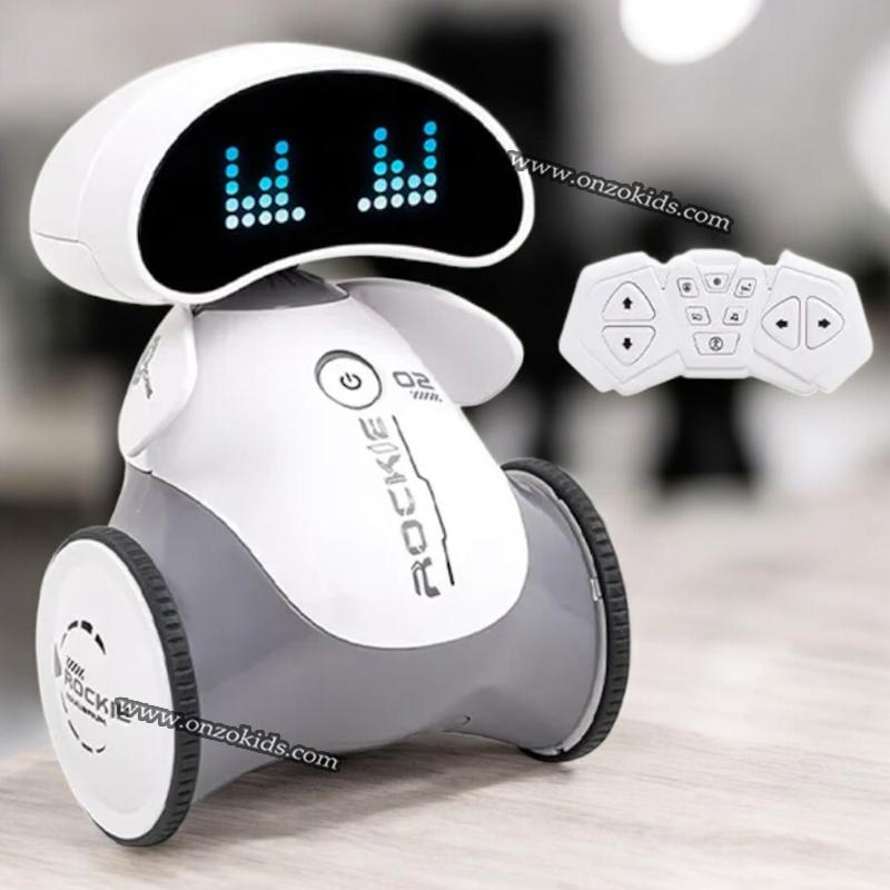 Contenu de la boîte : robot Rockey, télécommande, câble de charge, Notice d’utilisation