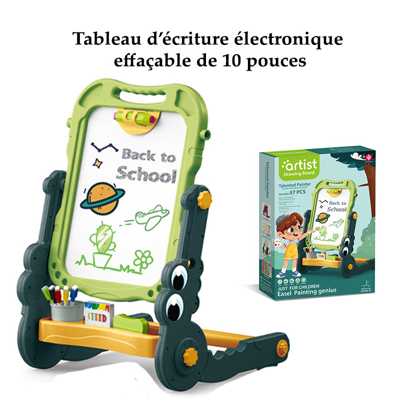 4. Effacement facile : Le tableau magnétique est équipé d’une gomme coulissante ; il suffit de faire glisser le dessin d’avant en arrière pour effacer et en commencer un nouveau. La gomme intégrée est un accessoire ingénieux qui vous évite d’acheter inutilement des fournitures scolaires pour votre enfant. Elle permet également d’éviter les taches d’huile sur les vêtements lors des dessins à la peinture ou à l’encre. La plupart des huiles et des encres contiennent des produits chimiques dangereux pouvant causer des problèmes respiratoires. 4. Tampons géométriques : La planche à dessin magnétique comprend quatre tampons géométriques pour rendre l’activité plus ludique. Les tampons colorés captivent l’attention et l’intérêt de votre enfant. Ils contribuent également à développer sa perception des différentes formes. Grâce à ces tampons, votre enfant dispose de davantage de possibilités de dessin. Il peut ainsi laisser libre cours à son imagination et créer de magnifiques scènes.