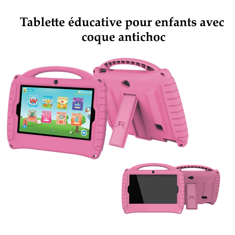 Offrez à votre enfant une expérience d’apprentissage ludique et interactive grâce à cette tablette spécialement conçue pour les plus jeunes. Protégée par une coque robuste en silicone avec poignée intégrée, elle assure confort d’utilisation et sécurité au quotidien. Caractéristiques principales : Écran tactile haute définition offrant une image claire et colorée, idéale pour les jeux éducatifs, vidéos et applications d’apprentissage. Connexion Wi-Fi 5G permettant d’accéder facilement aux contenus pédagogiques en ligne, vidéos et applications adaptées aux enfants. Coque de protection antichoc en silicone épais, résistante aux chutes, avec poignée ergonomique pour une prise en main facile. Support arrière pliable pour poser la tablette sur une table et regarder des vidéos confortablement, sans la tenir. Interface simple et adaptée aux enfants, avec jeux éducatifs, activités créatives, musique et vidéos pour stimuler l’apprentissage et l’imagination. Caméra intégrée pour prendre des photos, enregistrer des vidéos et encourager la créativité. Batterie rechargeable longue durée pour profiter de nombreuses heures d’utilisation. Avantages : Favorise le développement de la mémoire, de la logique et de la créativité. Idéale pour l’apprentissage des lettres, des chiffres et des couleurs. Conçue pour une utilisation sécurisée et adaptée aux enfants. Un cadeau parfait pour allier divertissement et éducation dès le plus jeune âge.