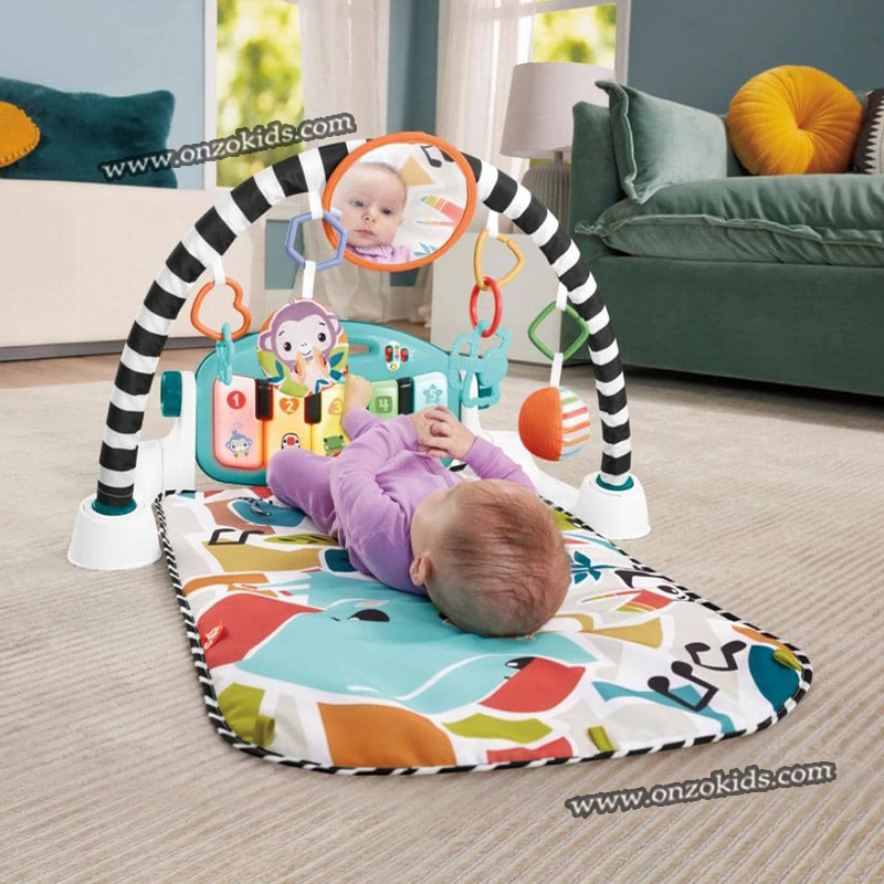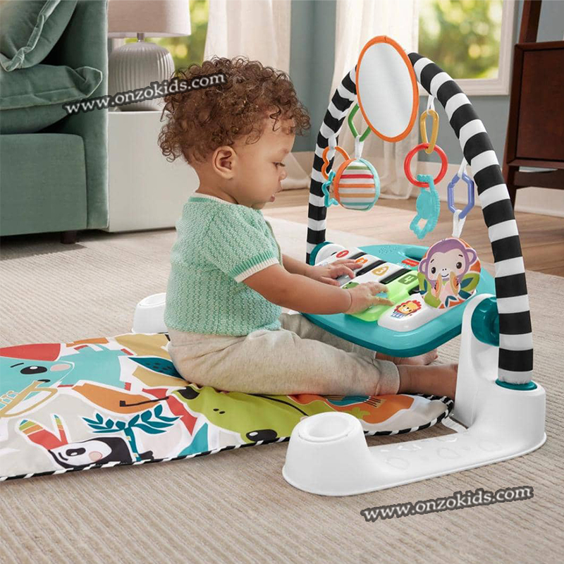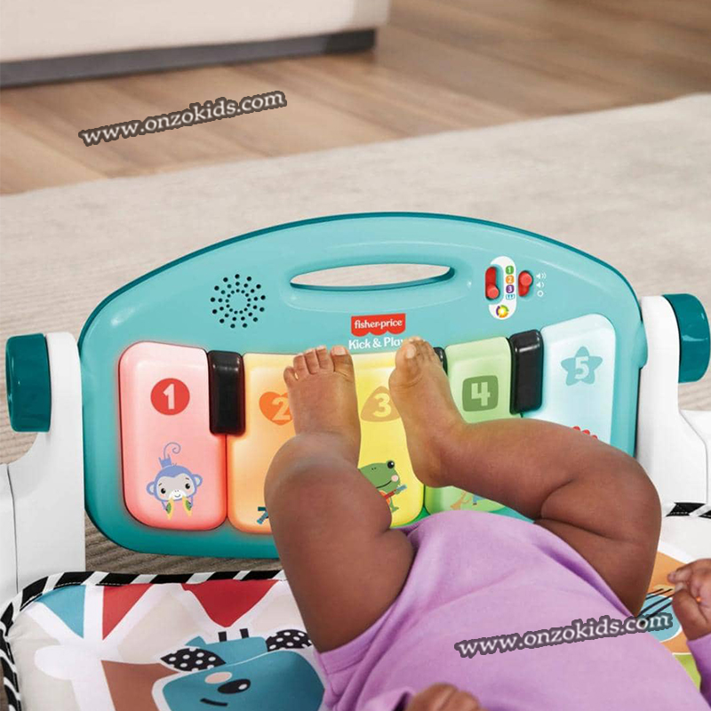 Stimulez l’éveil musical de votre tout-petit avec le tapis d’éveil musical Glow and Grow Kick & Play de Fisher-Price. Ce tapis d’éveil doux est doté d’une arche de jeux repositionnable à contraste élevé et de 10 jouets à relier. Le piano amovible, avec ses 5 touches lumineuses, offre un spectacle de lumières multicolores et propose 4 modes musicaux évolutifs, adaptés à la croissance de bébé, de la naissance à la petite enfance. Grâce à ses 3 niveaux d’apprentissage Smart Stages et à son mode libre avec de vraies notes de piano, l’apprentissage reste toujours stimulant et amusant, que votre petit virtuose soit allongé sur le ventre ou assis pour créer sa propre musique !