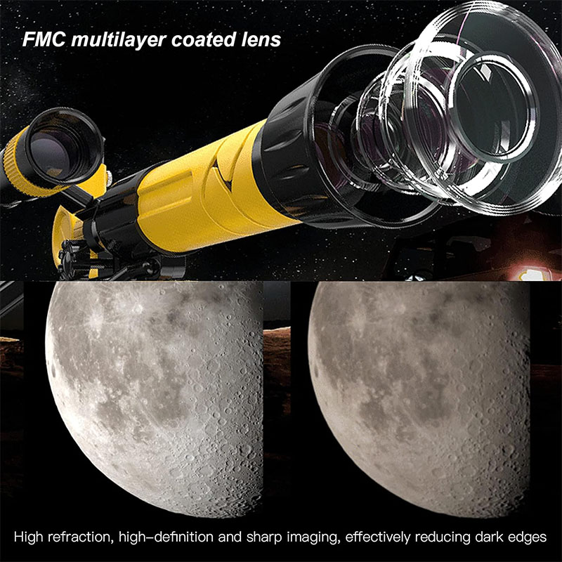 - Télescope réfracteur (à lentilles) lentille multicouche FMC avec haute réfraction, haute définition et images, qui réduit efficacement le vignettage.