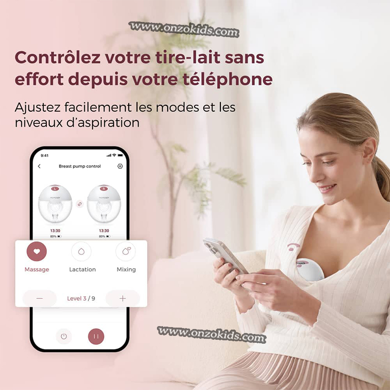 ● Commande intelligente par application : Contrôlez votre tire-lait depuis votre téléphone grâce à l’application Momcozy. Réglez les modes de tirage et les niveaux d’aspiration, passez d’un tirage simple à un tirage double, et suivez le volume de lait et les tendances, sans devoir plonger la main dans votre soutien-gorge ou ajuster les boutons pendant l’utilisation.