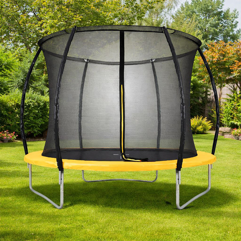 Pour éviter les accidents, le trampoline est équipé d’un filet de sécurité qui peut être fermé à l’aide d’une fermeture éclair. L’ensemble complet comprend le bord de protection du trampoline, des ressorts résistants, une toile de saut et le matériel de montage. Avec un diamètre de 183 cm, c’est le trampoline idéal pour votre jardin.