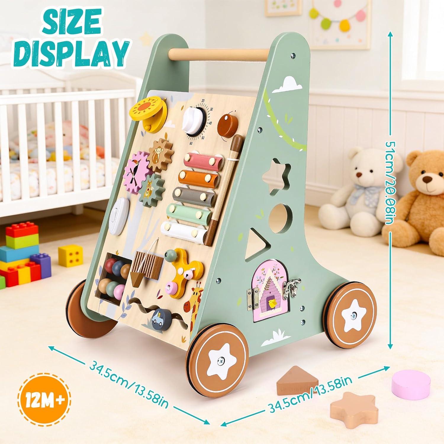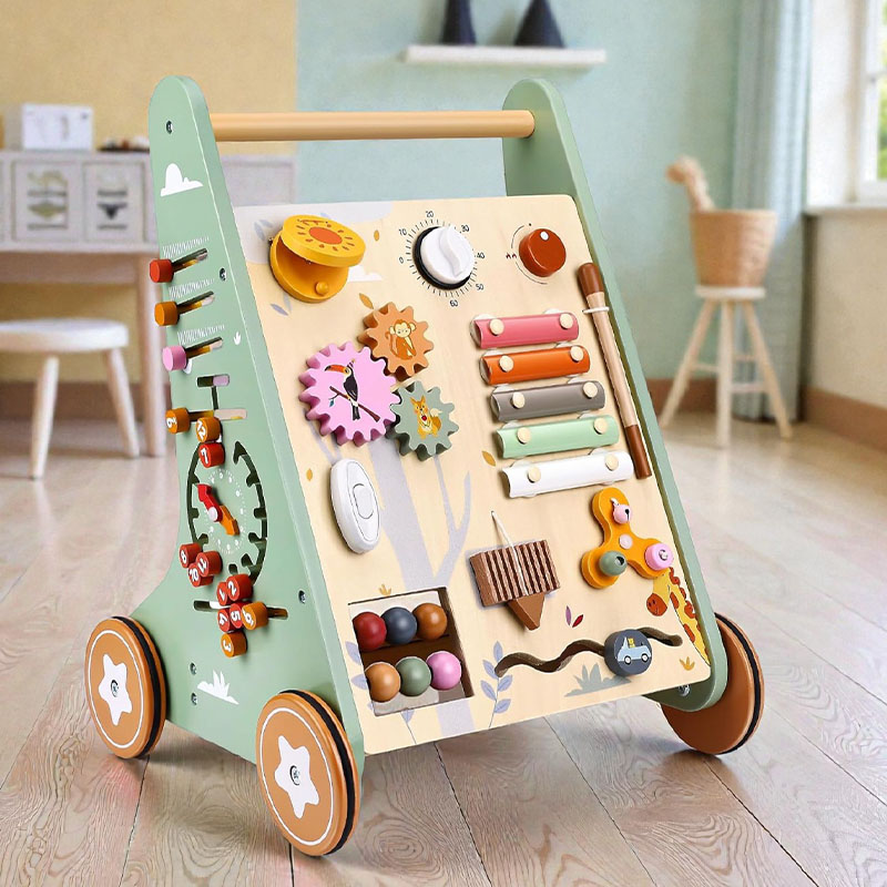 Marcheur en Bois Multifonctionnel Notre trotteur combine jeu créatif et développement moteur. Équipé d’un engrenage rotatif, d’une percussion mélodique, d’une cloche, d’un labyrinthe de perles, d’un trieur de formes, d’un contrôle du son, d’un interrupteur à clic et d’accessoires de jouets polyvalents. Chaque élément stimule la curiosité et soutient le développement de la petite enfance de manière ludique