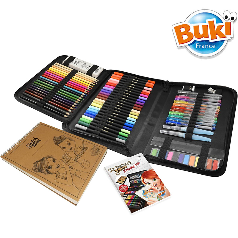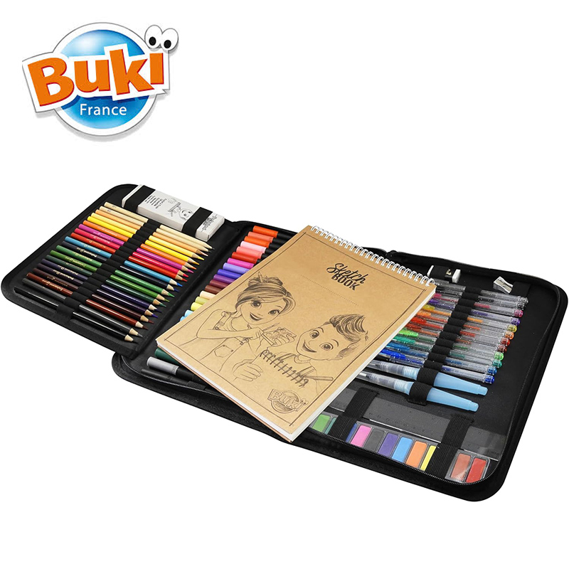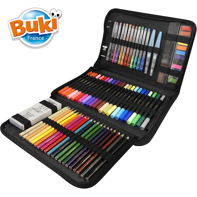 - TROUSSE DE DESSIN COMPLÈTE ET NOMADE – Tout le nécessaire pour dessiner, colorier et peindre réuni dans une pochette pratique avec poignée et fermeture éclair. Idéale à la maison ou en voyage !