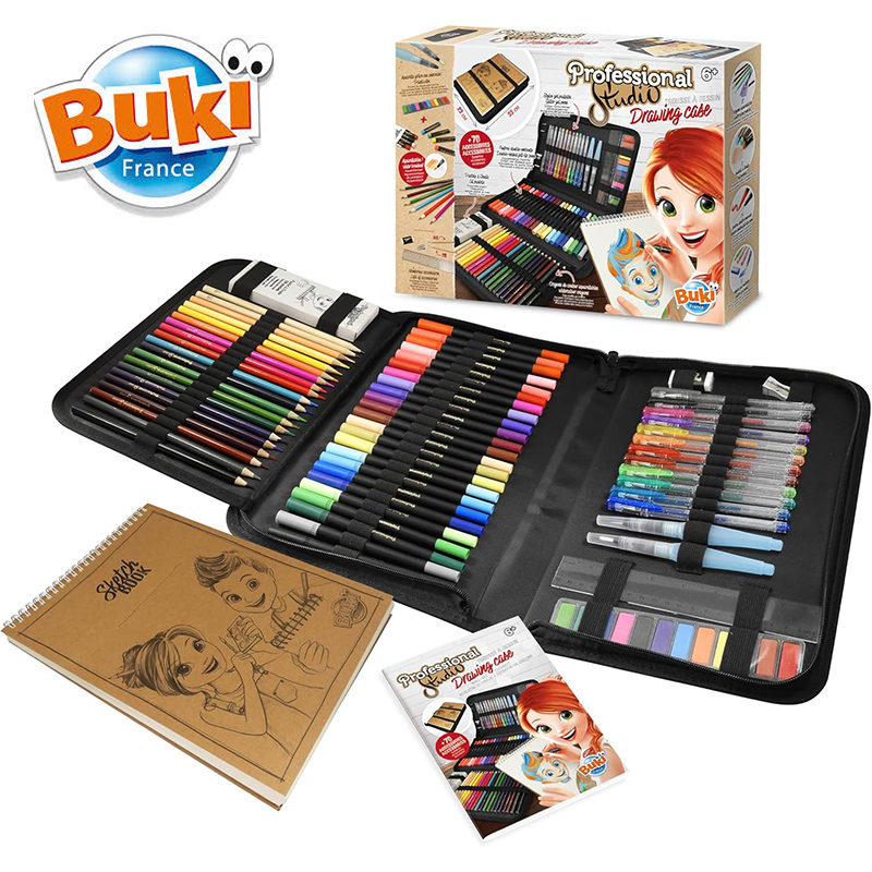- MATÉRIEL DE QUALITÉ PROFESSIONNELLE – Inclus : 12 pastilles de peinture, 24 feutres double-embout, 18 crayons aquarellables, 8 pastels à l’huile, 12 stylos gel pailletés, 2 crayons graphite (HB et 2B) et 2 pinceaux à réservoir d’eau.